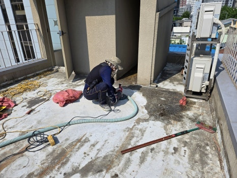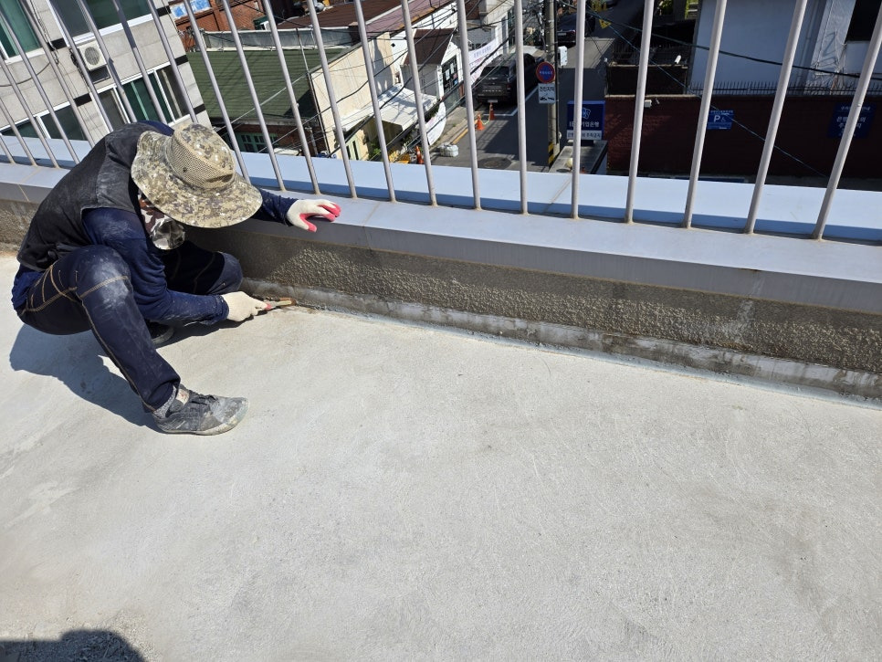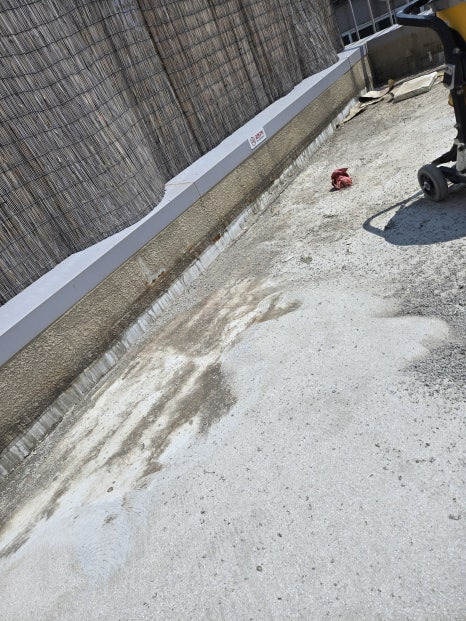 이런 경우 전체적으로 면을 갈아주면서 요철을 제거해주고, 평탄화작업을 진행하면서 중도 시공 시 낮은 부분에 더 두껍게 시공을 진행하여 물이 빠져나갈 길도 만들어줍니다.